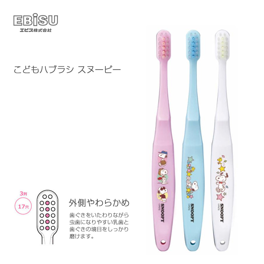 Bàn chải đánh răng EBISU hình Snoopy và Doreamon, made in Japan, dành cho trẻ từ 6 tuổi trở lên giúp làm sạch các mảng bám ở những vị trí khó làm sạch như kẽ răng, chân răng cũng dễ dàng bị đánh bay, mang lại cho trẻ hàm răng chắc khỏe và ngăn ngừa các bệnh về răng miệng.
