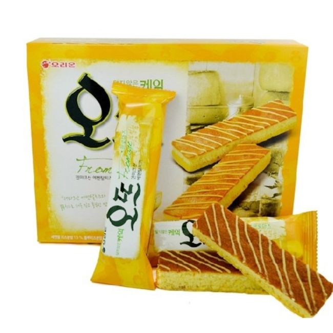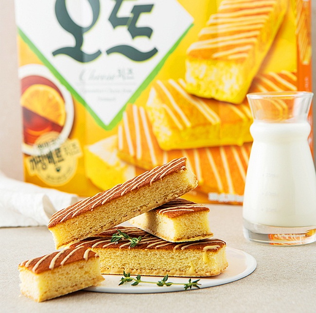 - Bánh bông lan phô mai Orion Hàn Quốc có vị béo ngậy đặc trưng của trứng và sữa tươi cùng hương thơm quyến rũ của phô mai. Bánh có độ ngọt vừa phải, bạn có thể sử dụng kèm với trà để trải nghiệm hương vị hấp dẫn hơn.