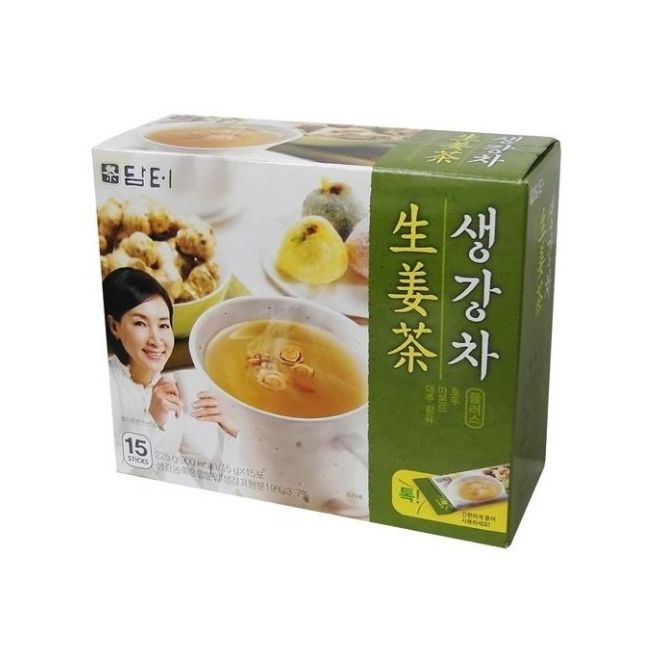 - Ngoài ra trà gừng còn có công dụng hỗ trợ khi bị cảm lanh, chống buồn nôn, giảm đau bụng do thức ăn, giúp tăng cường sức đề kháng và giữ ấm cho cơ thể. Trà gừng Damtuh Hàn Quốc 15g*50 được làm từ tinh chất gừng tươi, cho hương vị ngọt thanh và cay nồng.
