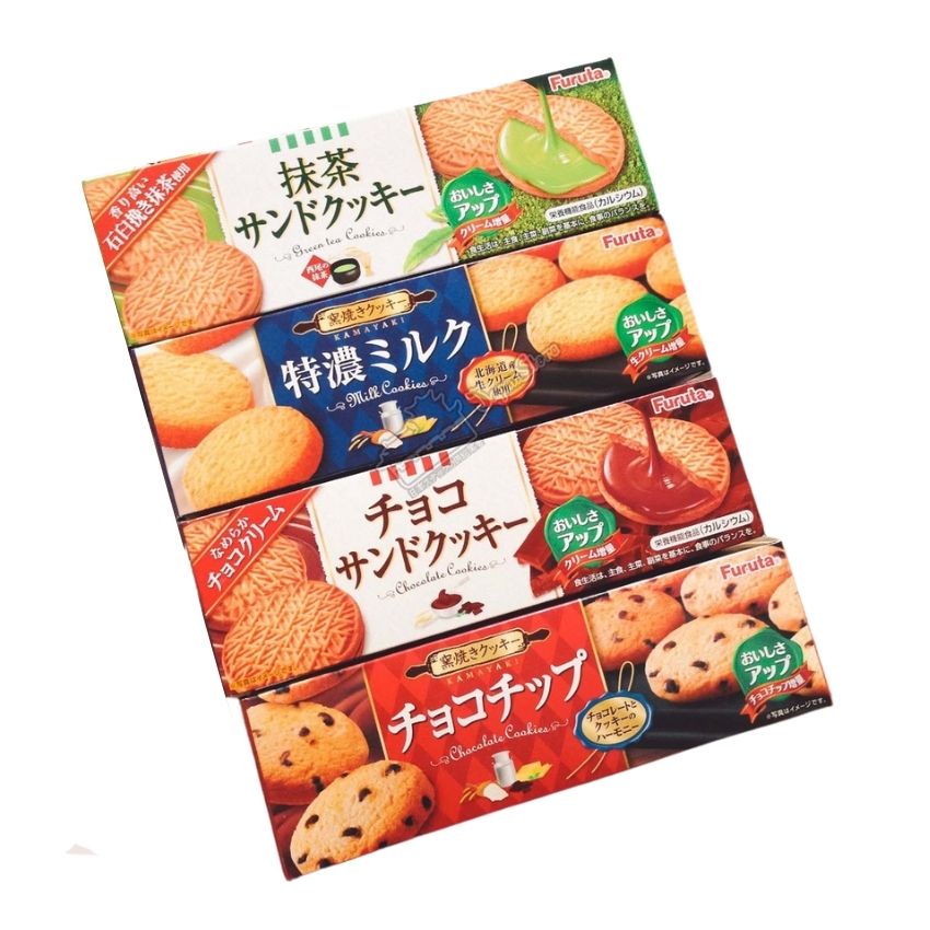 - Bánh quy bơ Furuta sở hữu tạo hình bắt mắt với thiết kế dạng hình tròn, được điểm vô vàn những mảnh socola nhỏ không chỉ giúp món ăn thêm thu hút mà còn có thể trở thành món quà tặng cho người thân nữa đấy.