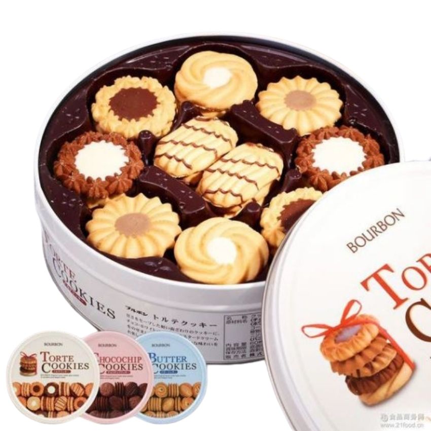 Bánh quy bourbon torte hộp thiếc Nhật Bản