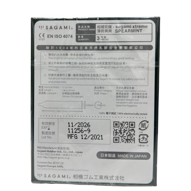 Bao cao su Sagami Xtreme Spearmint Hộp 3 là dòng sản phẩm của hãng Sagami Rubber Industries Nhật Bản.