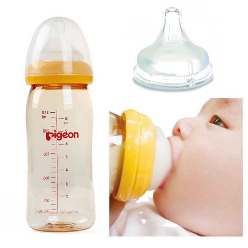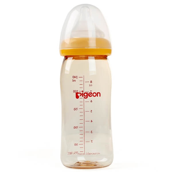 - Bình sữa Pigeon thủy tinh cổ rộng 240ml là một trong những dòng sản phẩm bán chạy nhất của thương hiệu này. Đây là sản phẩm hội tụ tất cả những yếu tố về bình sữa mà các mẹ đang tìm kiếm: an toàn tiện dụng, trẻ dễ ti bình và dễ dàng vệ sinh, tiệt trùng.