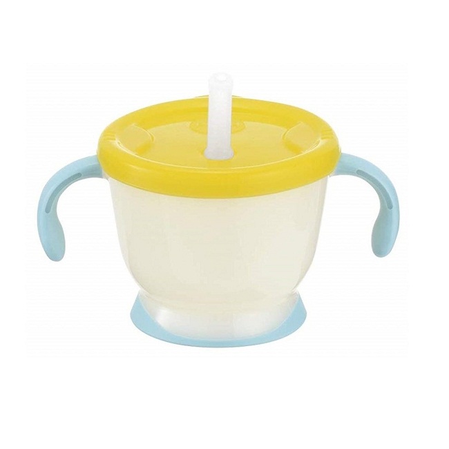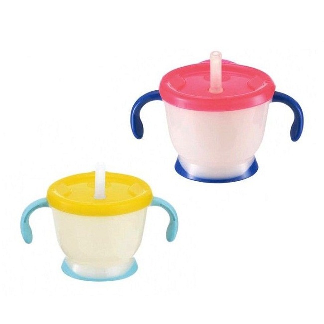 - Giai đoạn 2: (bé từ 6-9 tháng, bé dùng cốc ống hút): Thiết kế tay cầm 2 bên mảnh và uốn rộng, bé dễ dàng tự cầm để hút nước. Bé dùng cốc ống hút. Ống hút bằng silicone, chu vi hình elip vừa với khuôn miệng của bé, giúp bé uống dễ dàng và gọn gàng.