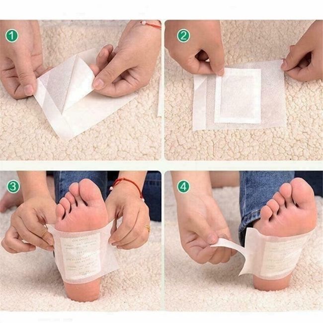 - Lặp lại các bước trên và dính một miếng dán trên chân còn lại. Để bảo vệ miếng dán không bị bong, xê dịch khi ngủ bạn có thể đi tất.