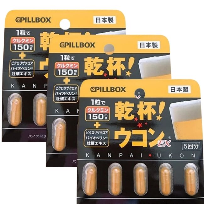 - Viên nghệ giải rượu Pillbox Kanpai Ukon có thành phần chính là nghệ có tác dụng phân hủy và thải trừ các chất độc hại trong rượu ra ngoài cơ thể. Từ đó giúp bảo vệ gan, niêm mạc dạ dày, đồng thời cũng làm giảm mệt mỏi và say xỉn khi uống nhiều bia, rượu.