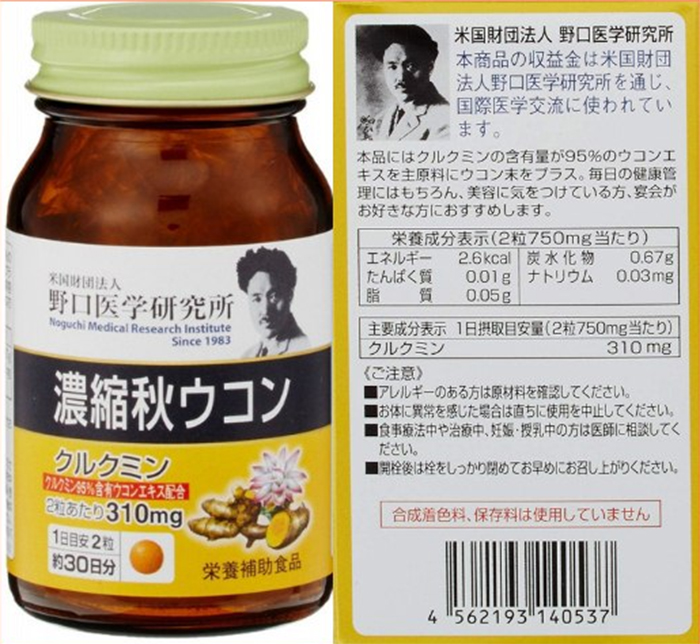 - Viên nghệ Noguchi Aki Meiji Ukon được chiết xuất từ nghệ vùng Okinawa, Nhật Bản, được thu hoạch vào mùa xuân cho ra hàm lượng Curcumin cao và chất lượng.