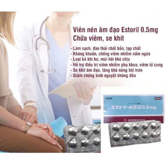- Viên nén âm đạo Estoril 0.5mg được điều chế bởi các chuyên gia tại Nhật Bản, hỗ trợ giải quyết các vấn đề "thầm kín" của chị em.