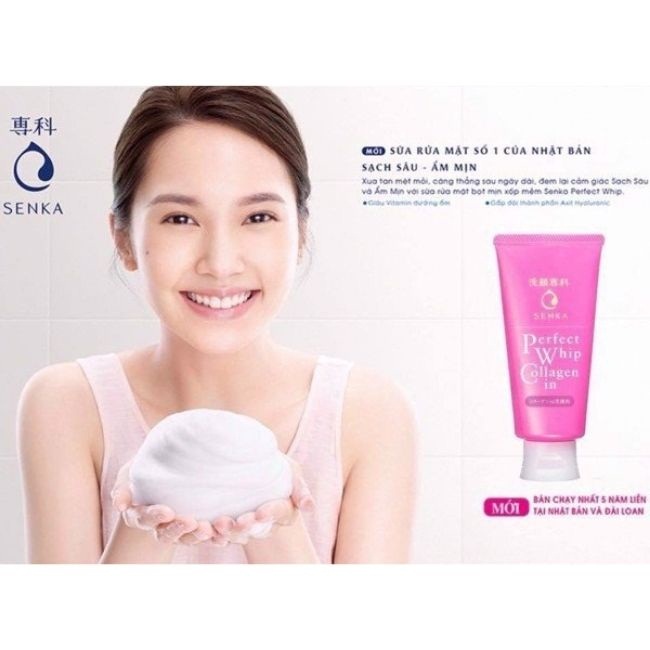 Sữa Rửa Mặt Collagen Senka với bọt tơ tằm trắng mịn kết hợp tinh chất collagen, nhẹ nhàng làm sạch bụi bẩn, bã nhờn sâu bên trong lỗ chân lông, đồng thời giúp da săn chắc, đàn hồi, căng mịn, làm mờ nếp nhăn, vết chân chim, hạn chế tình trạng chảy xệ da.