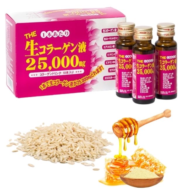 Dung dịch collagen tươi (25000mg), sữa ong chúa tươi (100mg), ceramide (chiết xuất từ gạo) (0,6mg), axit hyaluronic (10mg), Vitamin B2 (2mg), Vitamin B6 (2mg)