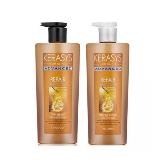 Cặp dầu gội xả Kerasys Advanced ampouple phục hồi tóc hư tổn màu Vàng chai 600ml