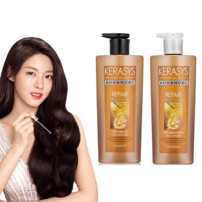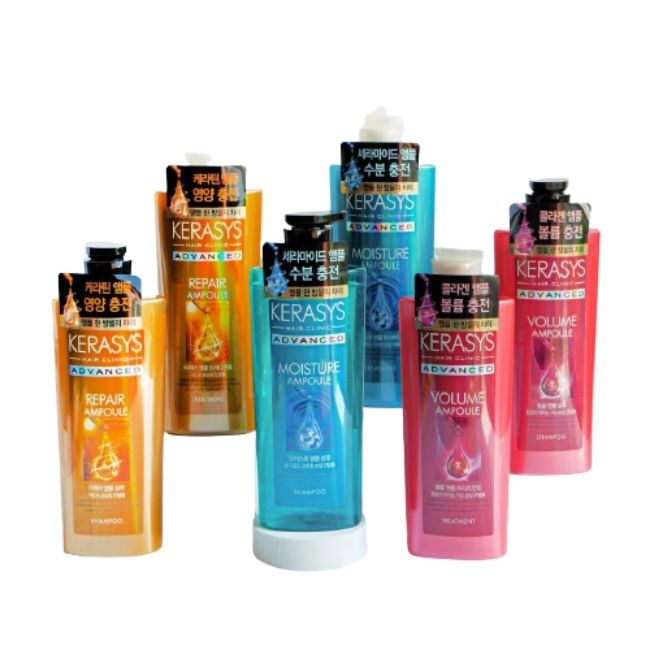 Cặp gội xả Kerasys Advanced ampouple bổ sung tinh chất Keratin Ampoule giúp phục hồi hiệu quả mái tóc hư tổn nặng do hóa chất