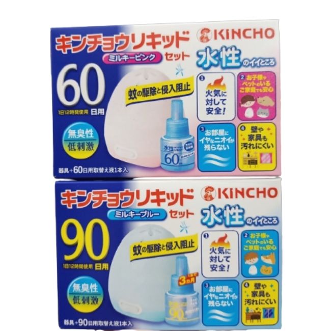 KINCHO - Set máy xông tinh dầu đuổi muỗi màu xanh trắng 100V + tinh dầu 90 ngày là sản phẩm được Dreamshop nhập khẩu hoàn toàn từ Nhật Bản và phân phối tại Việt Nam. Mỗi bộ sản phẩm gồm: 01 máy xông tinh dầu, 01 lọ tinh dầu đủ để sử dụng trong 90 ngày.