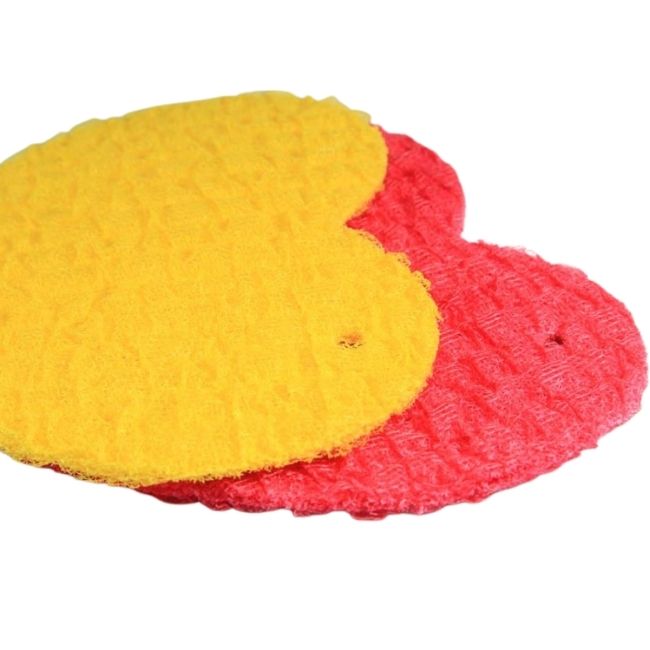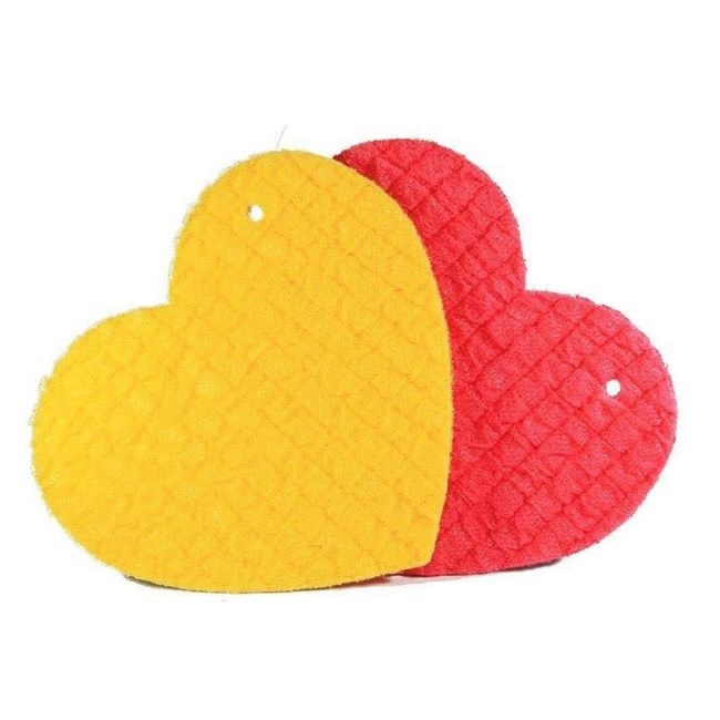 - Lưới rửa đa năng hình tim được làm từ chất liệu polyester mềm mại, dày dặn và bền dai, an toàn với da tay, tạo cảm giác thú vị cho người sử dụng.