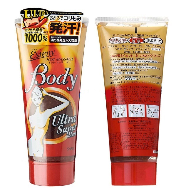 - Được sản xuất với công nghệ Nhật Bản sẽ đem lại cho bạn một sản phẩm ưng ý nhất. Esteny Body Hot Massage Gel được chế xuất từ các dược phẩm tự nhiên như tinh dầu cam, sáp ong tự nhiên, tảo biển và nhiều thành phần thiên nhiên khác đi nuôi dưỡng da trực tiếp, Kem có tác dụng đốt cháy mỡ và loại bỏ khối mỡ qua tuyến mồ hôi và nước tiểu ngoài ra kem có tác dụng ngăn ngừa tiếp nạp mỡ dư thừa vào cơ thể từ thức ăn.