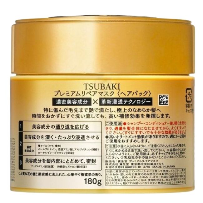 - Mặt nạ phục hồi tóc cao cấp Tsubaki Premium Repair Mask duy trì hiệu quả trong thời gian dài, được các thẩm mỹ viện lớn, các spa và salon làm tóc cao cấp tại Nhật tin dùng.