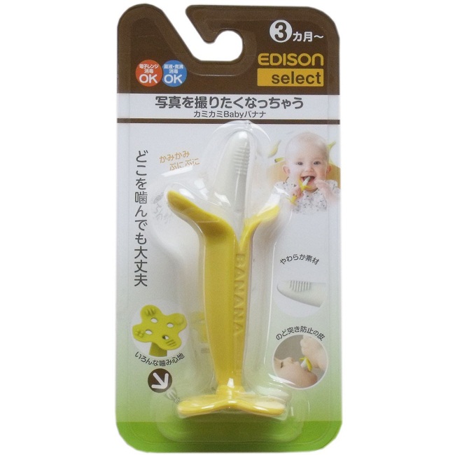 Cắn răng gặm nướu quả chuối Edison được chia thành ba phần: phần lõi màu trắng có đầu được làm sần để tiếp xúc, mát xa cho nướu của bé. Phần màu vàng vỏ chuối có kích thước rộng hơn cùng 2 phần xòe ra giúp bé dễ dàng cầm nắm không bị trơn trượt, đồng thời ngăn không cho gặm nướu đi vào quá sâu trong miệng bé. Phần đế được thiết kế để có thể giúp gặm nướu đứng thẳng khi đặt trên mặt phẳng.