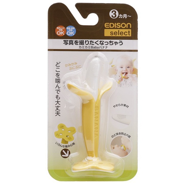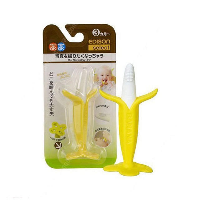 - Cắn răng được thiết kế hình trái chuối ngộ nghĩnh, thu hút sự chú ý của bé.