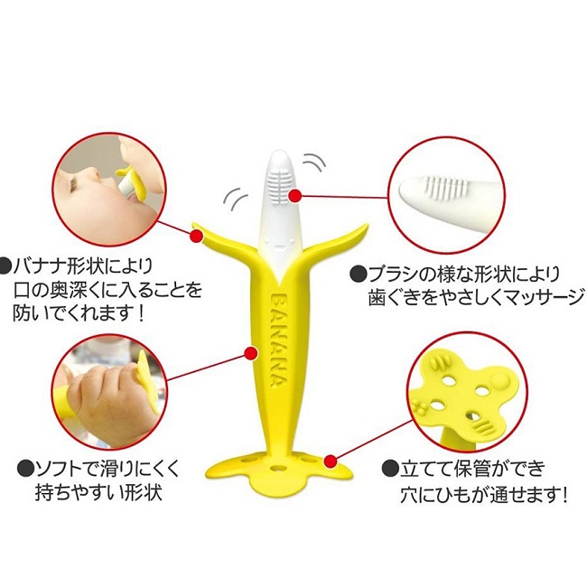 - Phần màu vàng vỏ chuối có kích thước rộng, giữ bé không cho gặm nướu vào sâu trong miệng