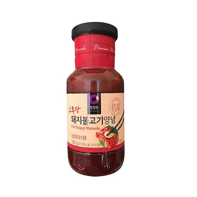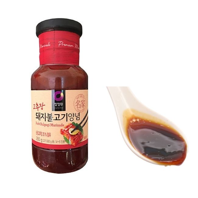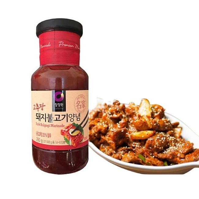 Sốt ướp thịt lợn xào Daesang 280g với công thức độc quyền cùng quy trình sản xuất khép kín, Sốt tẩm ướp của thương hiệu Daesang luôn nằm trong top những sản phẩm gia vị bán chạy nhất tại Hàn Quốc. Đây chính là loại gia vị làm nên vị ngon độc đáo của các món thịt lợn xào Hàn Quốc.