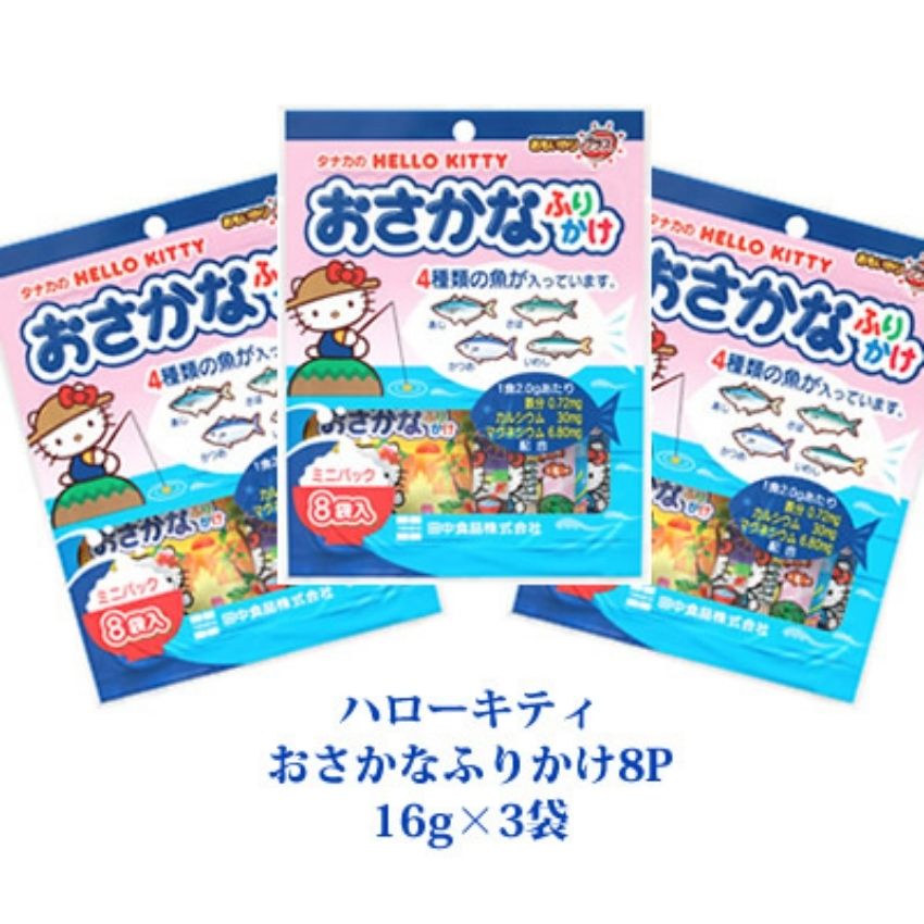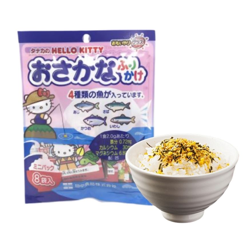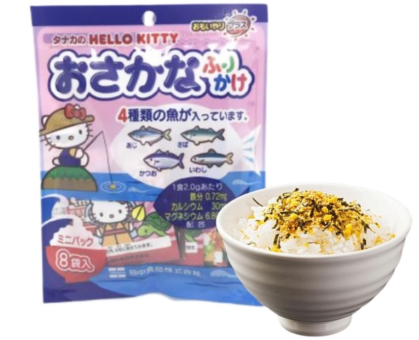 Rắc cơm Hello Kitty vị cá 8 gói là một món truyền thống của người Nhật. Nếu như người Việt Nam có muối vừng thì người Nhật có gia vị rắc cơm. Gia vị rắc cơm có ưu điểm là tiện dụng mà vẫn bảo đảm được dinh dưỡng, cách làm đơn giản, chủ yếu là sấy hoặc sao khô nguyên liệu rồi trộn đều với nhau.