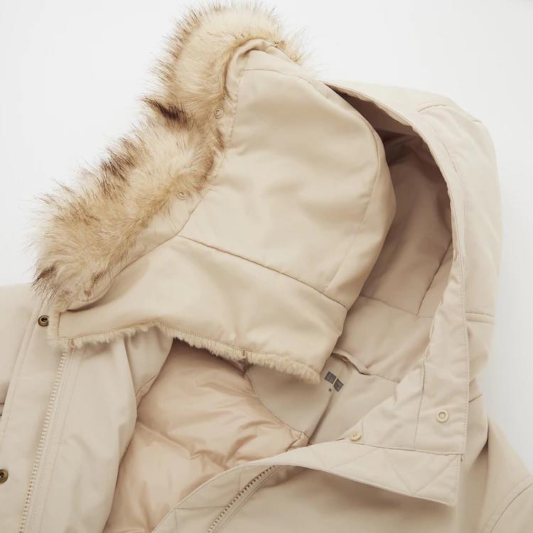 Áo này là dòng ấm nhất của Uniqlo. Bên trong lót 100% là lông vũ dày, bên ngoài là lớp siêu dày chống nước chống tuyết. Cẩn thận còn thêm quả mũ lông siêu mịn (phần lông này có thể tháo rời nha)