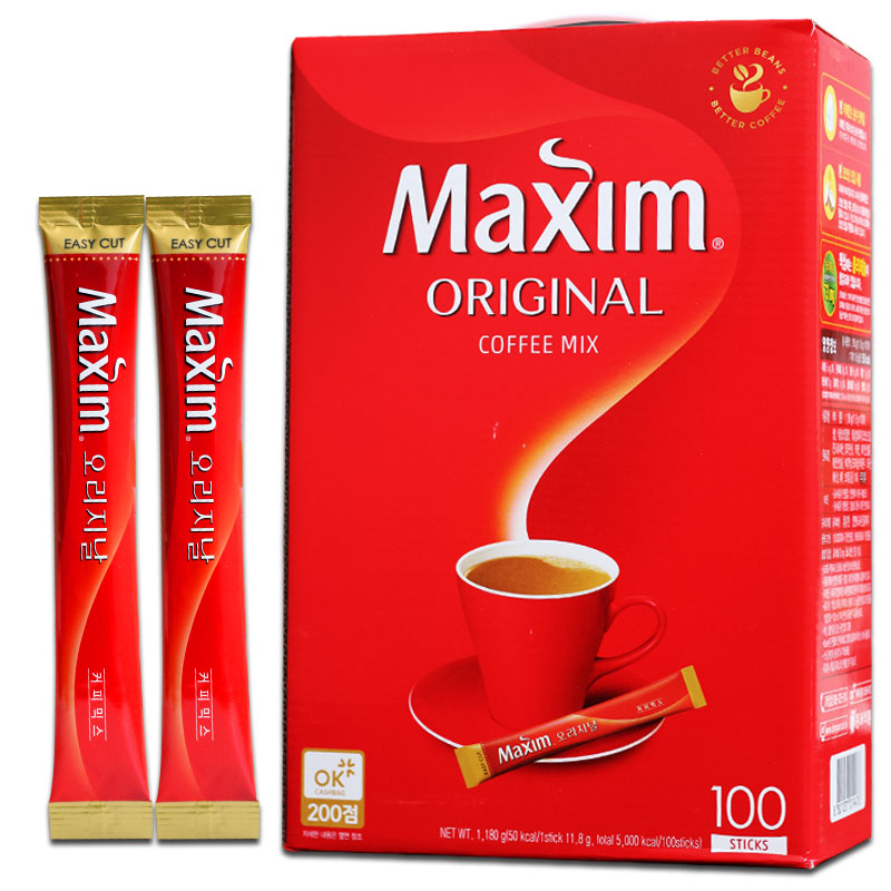Cà phê hoa tan Maxim Original 12g*100 gói màu đỏ hoặc màu hộp 12 X 100 gói Là thức uống thông dụng với đại đa số người dân Hàn Quốc. Hương vị thơm ngon được tuyển chọn từ những hạt cafe tinh túy nhất. Với công thức độc quyền tạo nên mùi vị khác biệt so với các đối thủ khác, cafe Maxim luôn được người dân Hàn Quốc tin dùng.