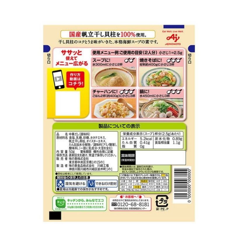 Hạt nêm Ajinomoto chiết xuất từ sò điệp (9m+) 50g với chiết xuất cô đặc từ thịt, xương ống, xương sườn, rau củ quả và đặc biệt có vị sò điệp được sản xuất trực tiếp tại nhà máy của Công ty Ajinomoto Nhật Bản.