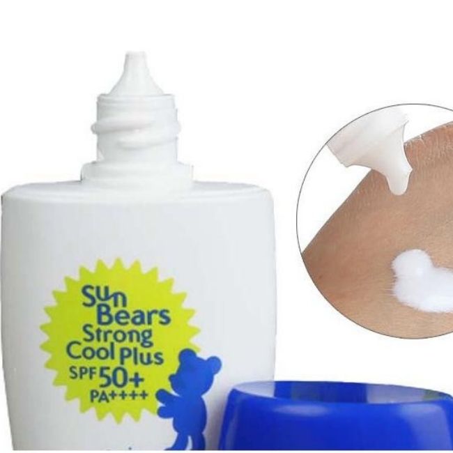 Kem chống nắng Sunbear cho bé và người lớn là kem chống nắng vật lý lai hóa học hiếm hoi của Nhật không chứa cồn, Omi Sun Bears sở hữu chất kem vô cùng lỏng dễ tán, tạo cảm giác thông thoáng tuyệt đối như không hề có dấu vết nào trên da.