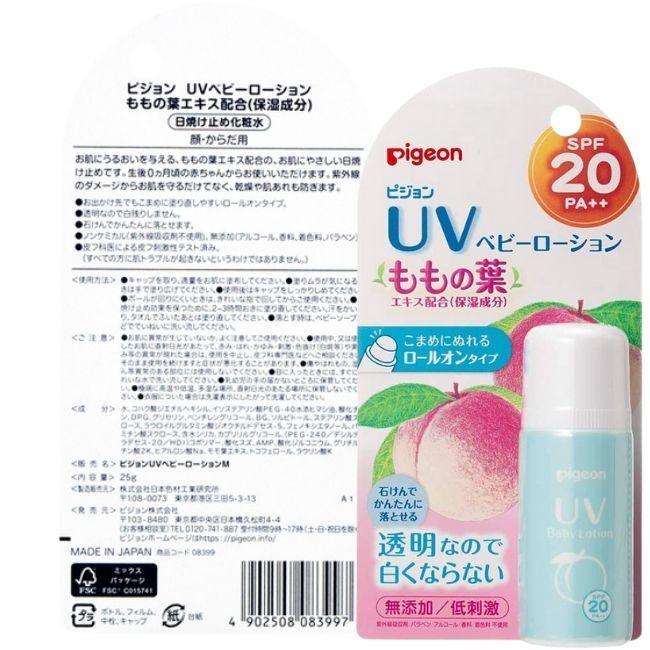 Kem chống nắng cho bé Pigeon UV Baby Lotion SPF 20 chiết xuất lá đào dạng lăn 25g sản phẩm chống nắng dành cho trẻ em dạng lăn, siêu gọn nhẹ cho bé thiết kế cực tiện sử dụng