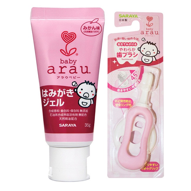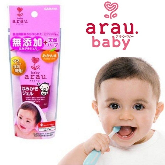 - Kem đánh răng Arau Baby mang đến vị ngọt tự nhiên từ tinh dầu cam, giúp bé thích thú hơn trong quá trình vệ sinh răng miệng.