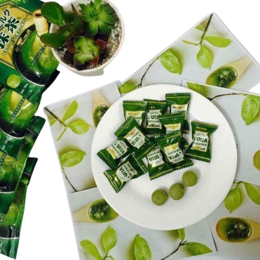 - Kẹo trà xanh nhật bản có hương vị tự nhiên của trà xanh thơm lừng trong miệng ngon tuyệt, và sữa béo béo bên trong.