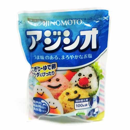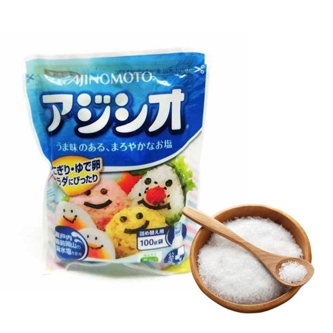 Muối Ajinomto gói 100g giảm 50% độ mặn so với muối biển thông thường, cắt giảm NaCl thay vào đó là Kali trong rau củ trái cây, rất cần thiết cho sự phát triển của bé.