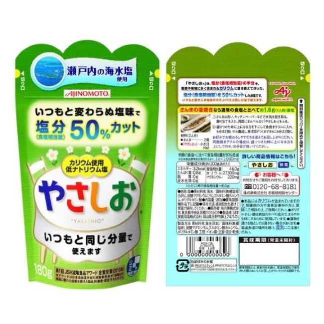 - Ajinomoto đã mang đến cho mẹ một giải pháp tuyệt vời, trên cả tuyệt vời với sản phẩm muối tách chiết bớt 50% Natri. Việc tách bớt 50% Natri không những làm giảm độ mặn của muối mà còn làm bớt nguy cơ thừa Natri khi bé dùng thực phẩm được mẹ nêm thêm Yasashio.