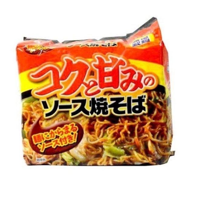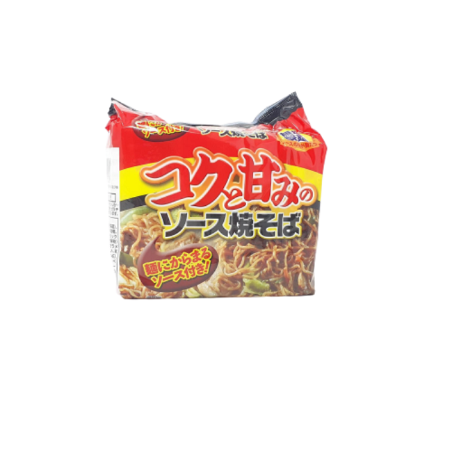 Mì xào: (Bột mì, dầu thực vật, muối), gói súp: (Đường, nguồn, dầu thực vật, muối, men, protein thủy phân, các loại gia vị, hương vị), gói rau: (Bắp cải, gia vị, rau diếp biển, gừng ngâm), màu caramel, canxi cacbonat, acidulant, gia vị, vitamin B2, vitamin B1,...