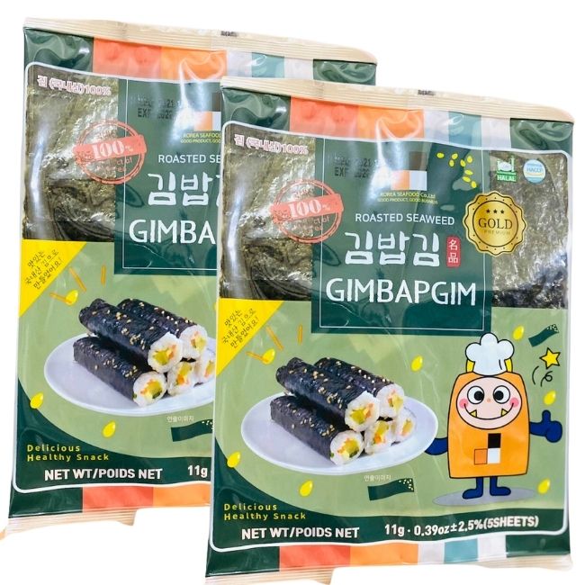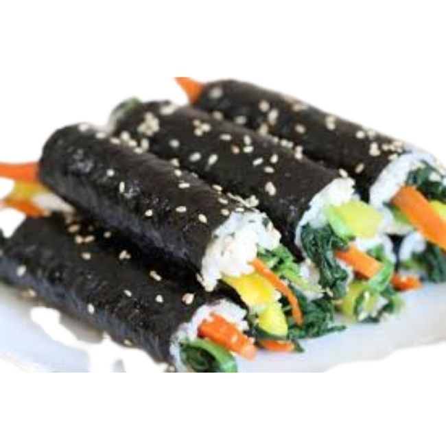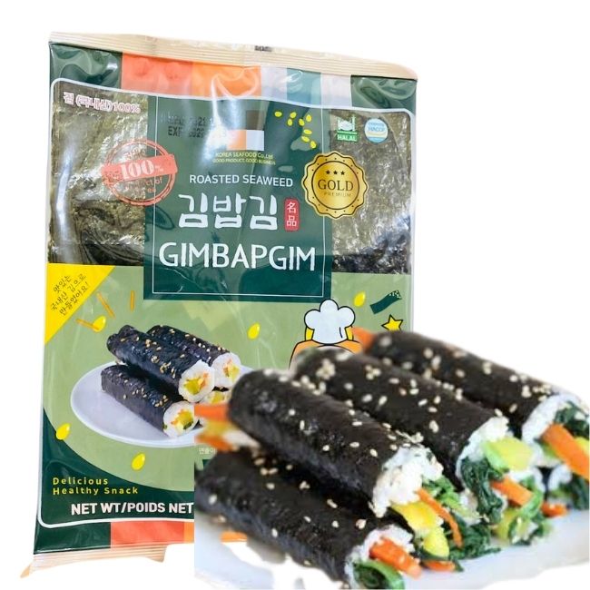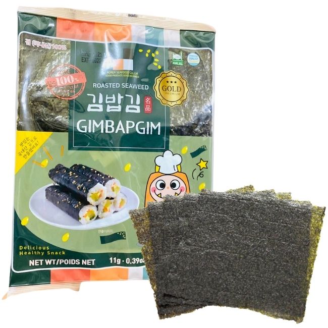 - Rong biển cuộn cơm Gimbapgim là rong biển lá dày, dai, dễ dàng cuốn mà không bị vỡ vụn, được sản xuất bởi công nghệ Hàn Quốc với 100% là rong biển tự nhiên được nghiệm ép thành những lá mỏng.