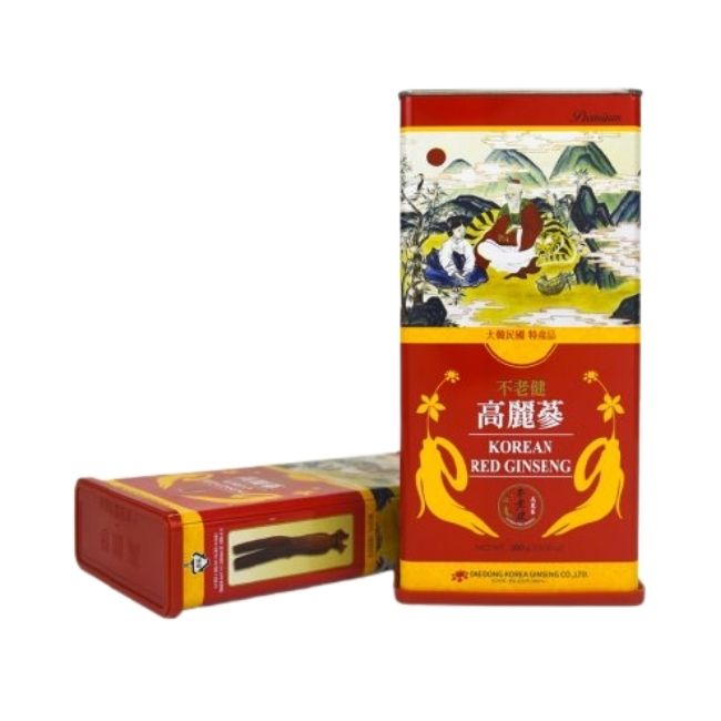 Hồng sâm củ khô Hàn Quốc hộp thiếc 37.5g là sản phẩm tinh chế từ củ sâm tươi, sau khi thu hoạch được sơ chế và hấp sấy ở nhiệt độ tiêu chuẩn giúp dễ bảo quản. Ngoài sấy khô, sâm tươi còn có thể dùng ngâm rượu, chế biến thành cao, nhưng dạng hồng sâm khô vẫn được ưa chuộng nhất. Vì hồng sâm khô có thể tùy biến thành nhiều kiểu như chưng mật ong, cắt lát ngậm, pha trà hồng sâm,… tùy theo sở thích mỗi người.