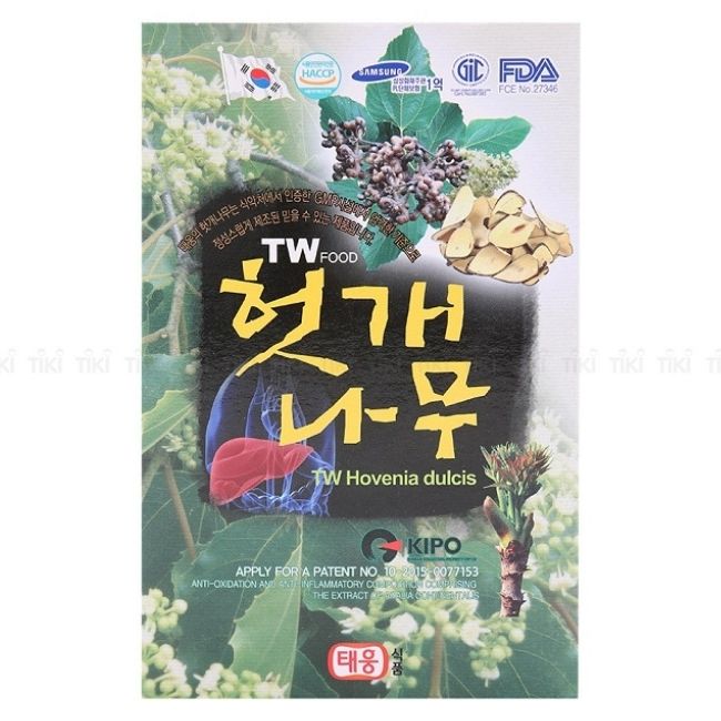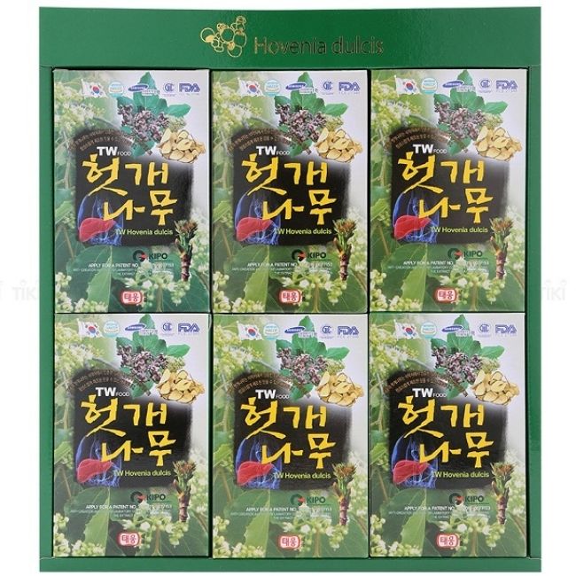 Thành phần: 50% hovenia dulcis thunberg. 10% táo đỏ hàn quốc , 10% câu kỳ tử. 10% Clycyrrhizae Radix, 10% Schizandra, 10% Cinnamon.