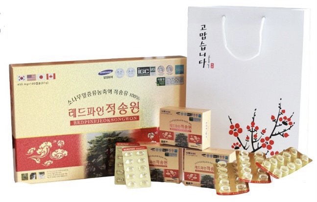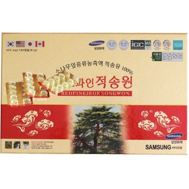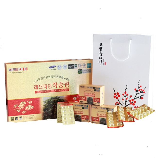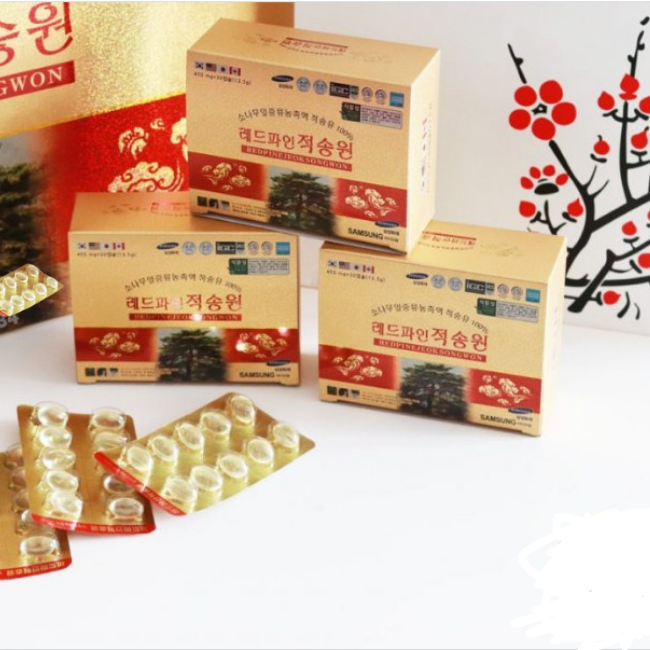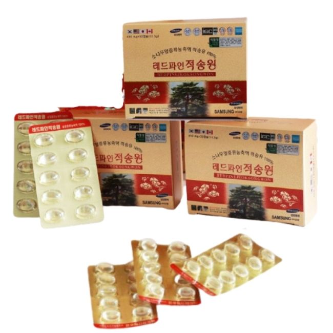 Thành phần: Được chiết xuất hoàn toàn 100% từ lá cây thông đỏ Hàn Quốc. Theo nghiên cứu, cứ 2,7 kg lá thông đỏ mới sản xuất ra 1 viên tinh dầu thông. Hỗ trợ điều trị các bệnh về gan, làm tan lượng mỡ thừa, giúp cơ thể săn chắc. Làm chậm quá trình lão hóa, tăng khả năng sản sinh collagen giúp trẻ lâu, ngăn ngừa lão hóa. Tăng cường trí nhớ, thúc đẩy hệ tim mạch, phòng tránh đột quỵ.