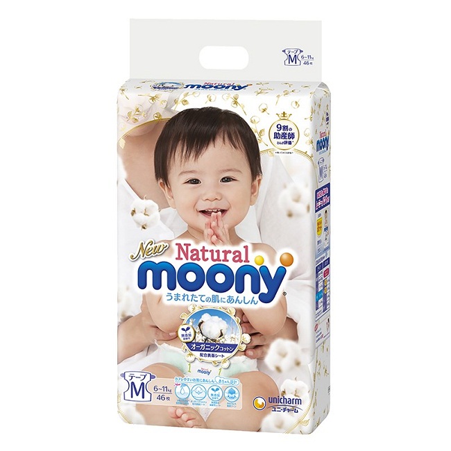 Mô tả Tã bỉm dán Moony Natural M46 (6-11kg)
