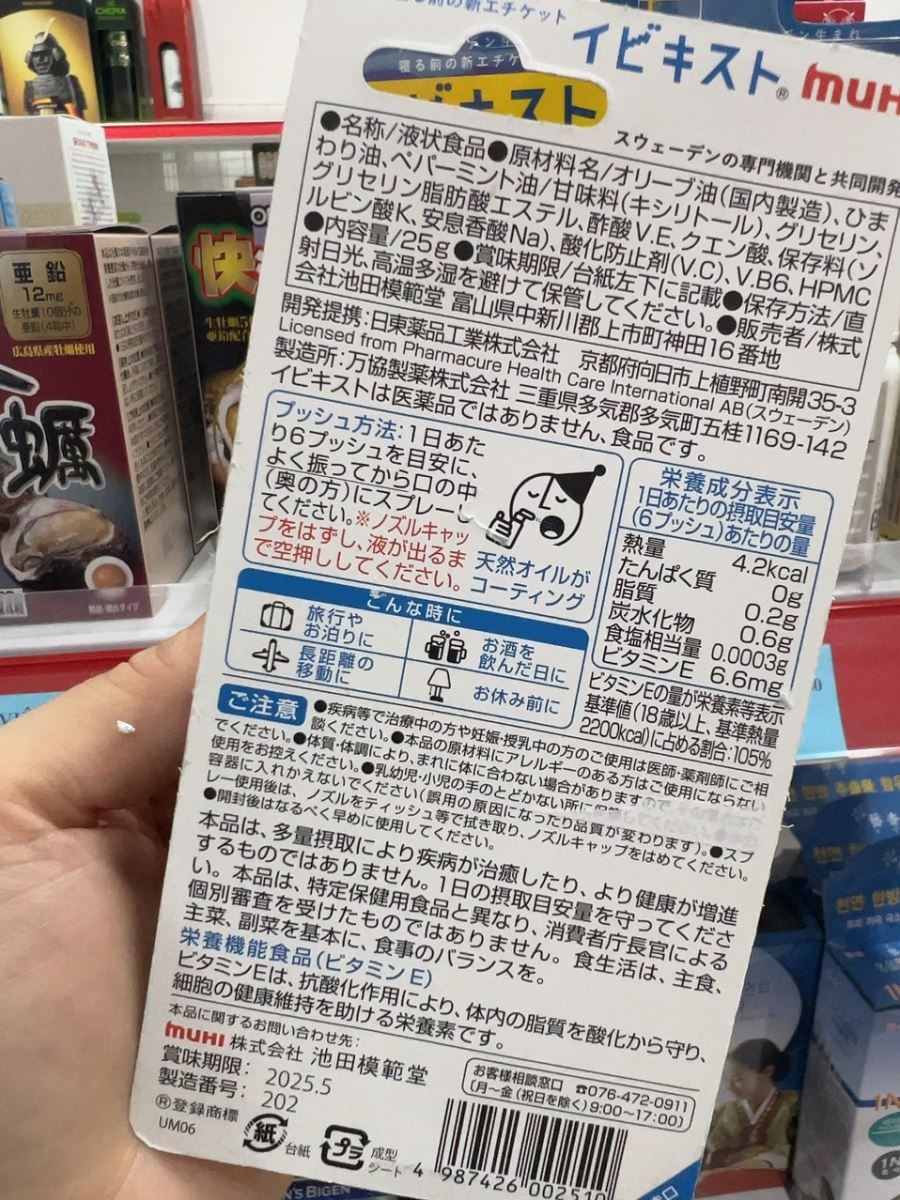 Sản phẩm xịt chống ngáy Muhi có chứa 3 loại dầu từ thiên nhiên và vitamin E, có tác dụng giúp luồng không khí được thông suốt. Đồng thời, giúp giảm sự mở của thanh quản. Sử dụng Xịt họng chống ngáy Muhi Nhật Bản giúp giảm tiếng ồn khi ngủ, mang đến giấc ngủ ngon và sâu hơn.