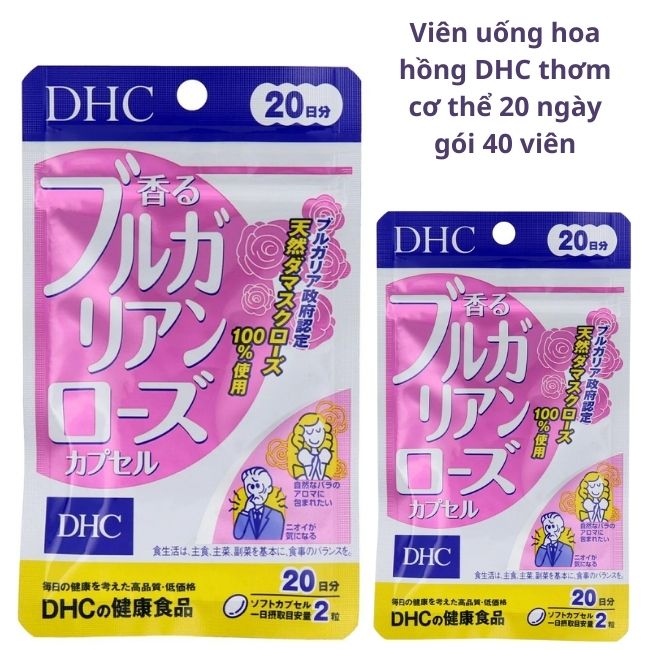 - Viên uống thơm cơ thể DHC Nhật Bản có chứa đến 850 thành phần giúp cơ thể tạo ra mùi hương tự nhiên làm thay đổi thành phần gây mùi trong tuyến mồ hôi giúp cơ thể tỏa hương thơm tự nhiên chỉ sau 2-3h uống.