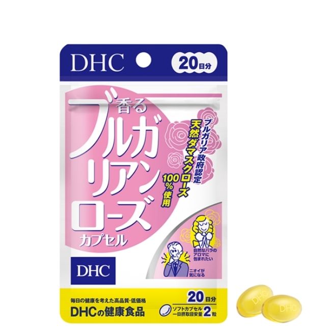 Viên uống dầu hoa hồng thơm cơ thể DHC Nhật Bản được chiết xuất từ hoa hồng Bulgaria chứa nhiều hoạt chất Geraniol cùng với Citronellol của tinh dầu xả có tác dụng chống oxy hóa mạnh mẽ ngăn ngừa sự oxy hóa của Axit 9-Hexadecene và Lipid Peroxide nguyên nhân chính gây ra mùi hôi cho cơ thể. Đồng thời trong dầu hoa hồng có chứa đến 850 thành phần giúp cơ thể tạo ra mùi hương tự nhiên kích thích cơ thể tiết ra nội tiết tố nữ làm tỏa hương khắp cơ thể.