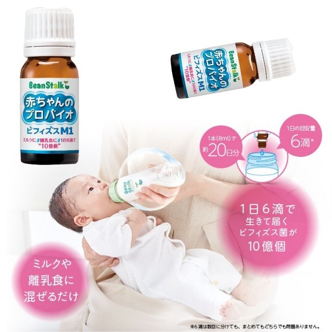 Men tiêu hóa Beanstalk Probiotic M1 dùng cho trẻ từ sơ sinh 8ml được điều chế không mùi, không vị để đưa Vi khuẩn Bifidus sống vào sữa hoặc thức ăn cho trẻ sơ sinh một cách dễ dàng.
